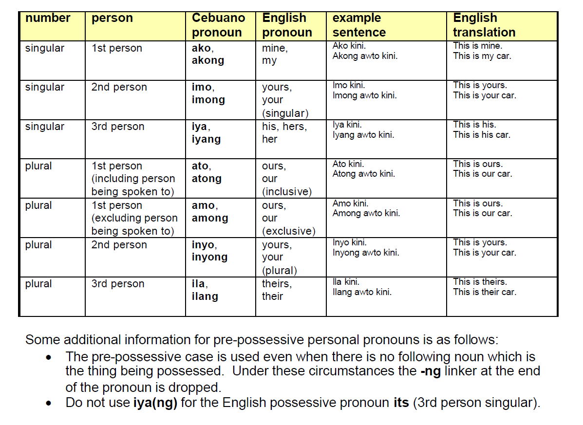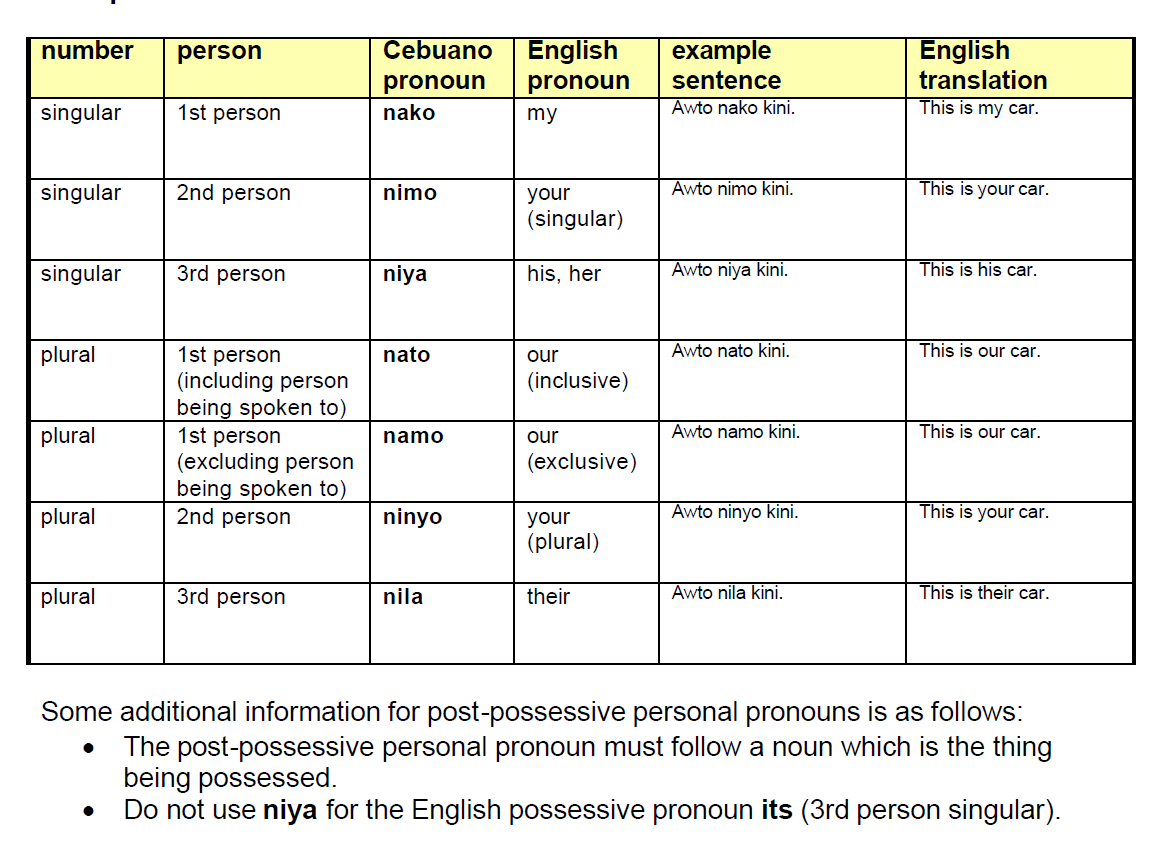 | 1 | ability to | command | naka | Tuon ( teach/study ) | Nakatuon siyag Binisaya | He could have taught Visaya |